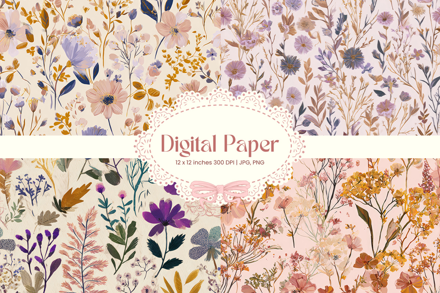 Flower Digital Paper Pack Flower Pattern Craft Supplies Background Paper Flower Digital Paper Flower Wallpaper Flower Seamless Pattern Wedding Backdrops Party Wallpaper