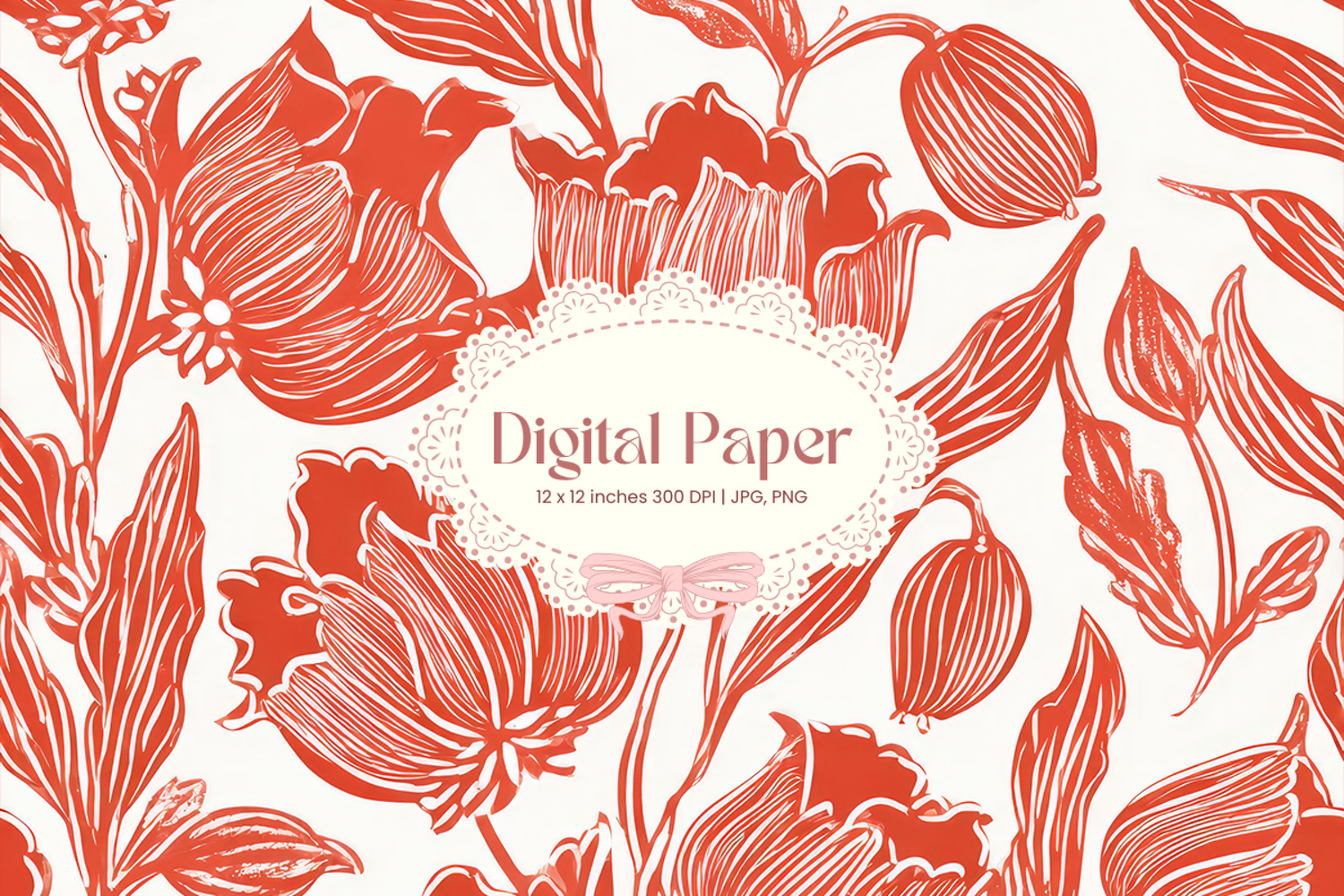Flower Digital Paper Pack Flower Pattern Craft Supplies Background Paper Flower Digital Paper Flower Wallpaper Flower Seamless Pattern Wedding Backdrops Party Wallpaper