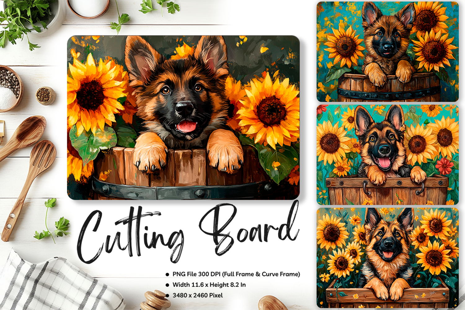 Dog Sunflower Cutting Board Kitchen Animal Chopping Template example image 1