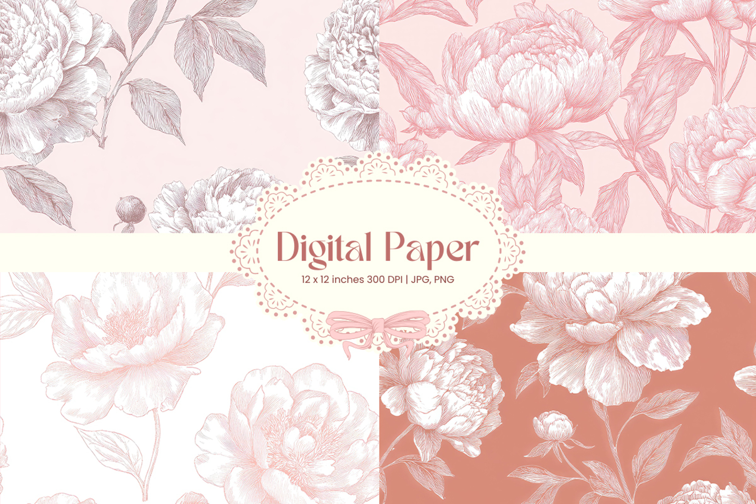 Flower Digital Paper Pack Flower Pattern Craft Supplies Background Paper Flower Digital Paper Flower Wallpaper Flower Seamless Pattern Wedding Backdrops Party Wallpaper