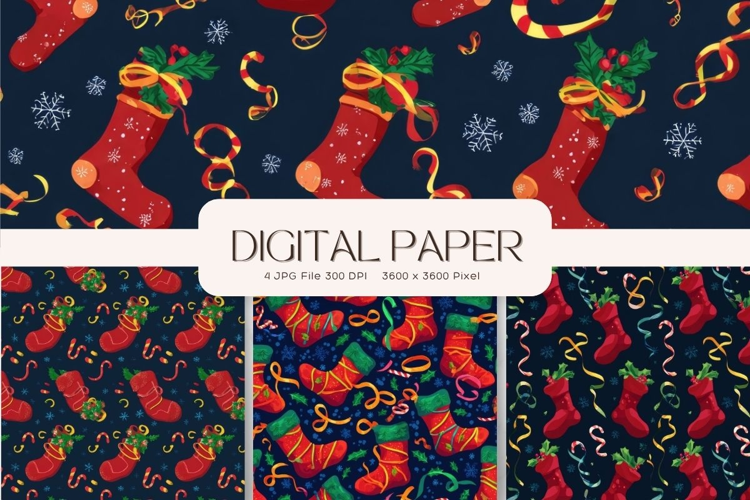 Christmas Sock Pattern Digital Paper Background Seamless_47 example image 1