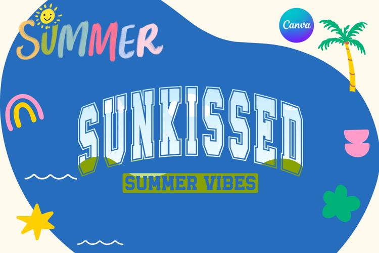 sunkissed summer vibes Canva Frame Varsity shirt design example image 1