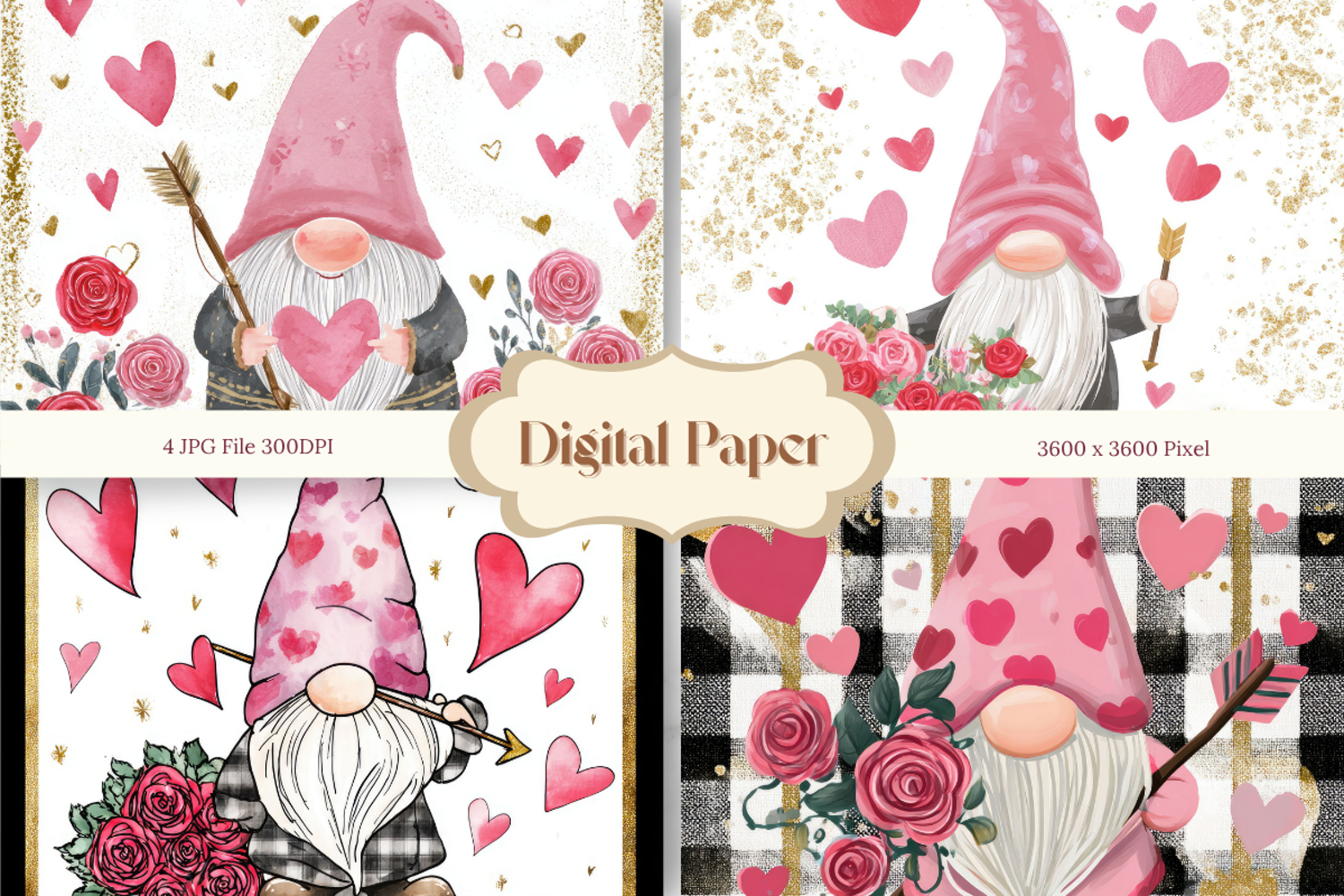 Gnome Valentine Background Love Heart Wallpaper Backdrop_3 example image 1