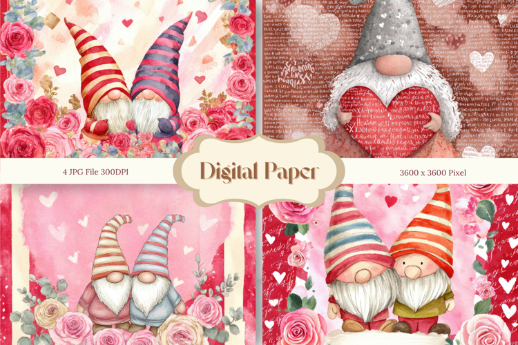Gnome Valentine Background Love Heart Wallpaper Backdrop_5 example image 1