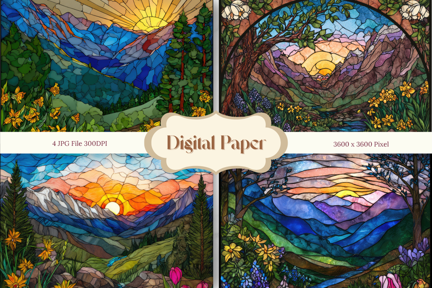 Digital Paper Pack Craft Supplies Background Paper Stained Glass Background Stained Glass Texture Flower Stained Glass Party Wallpaper Window Stained Glass