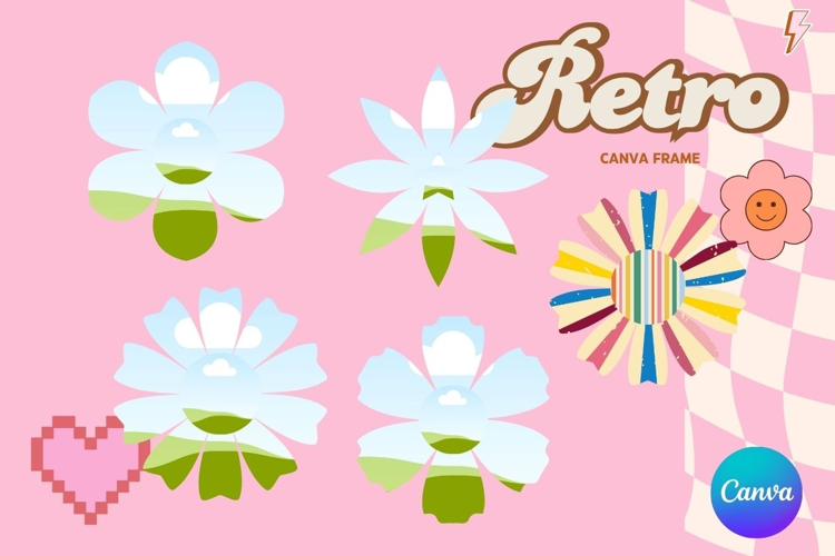 Retro Flower Drag And Drop Canva Template Canva Frame Canva Elements Canva Frame Template Fill Your Own Canva Canva Add Photo Retro Flower Canva Frame Vintage Flower Canva Frame