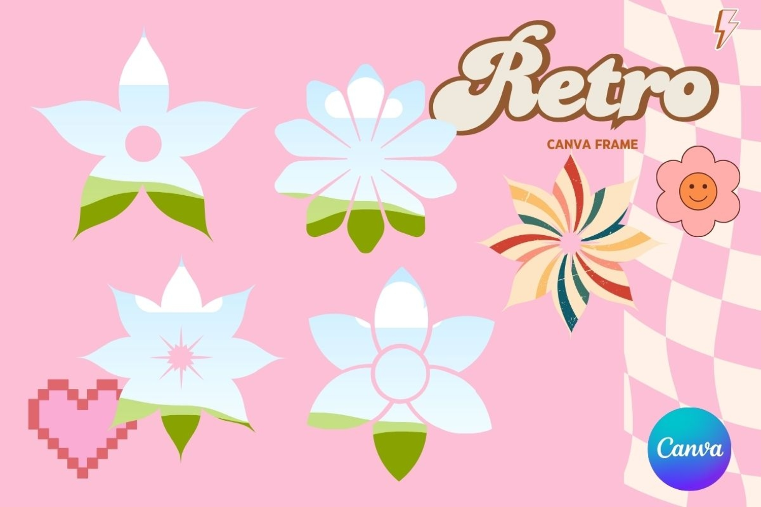 Retro Flower Drag And Drop Canva Template Canva Frame Canva Elements Canva Frame Template Fill Your Own Canva Canva Add Photo Retro Flower Canva Frame Vintage Flower Canva Frame