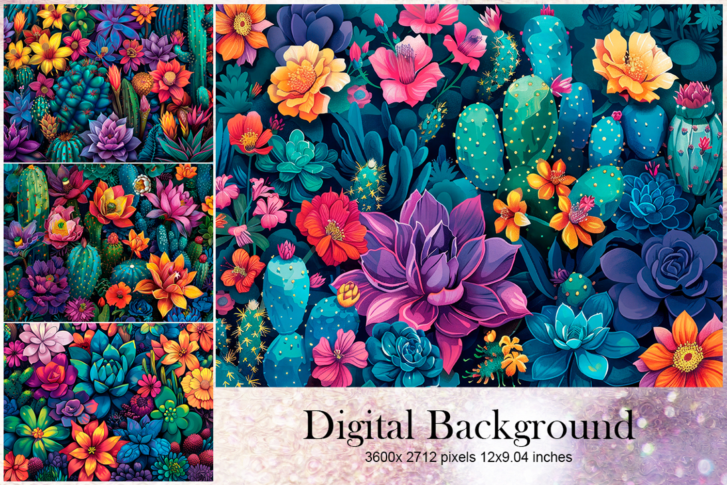 Digital Paper Pack Craft Supplies Background Paper Cactus Background Cactus Digital Paper Cactus Wall Art Summer Wallpaper Colorful Cactus Desert Background Cactus Wallpaper