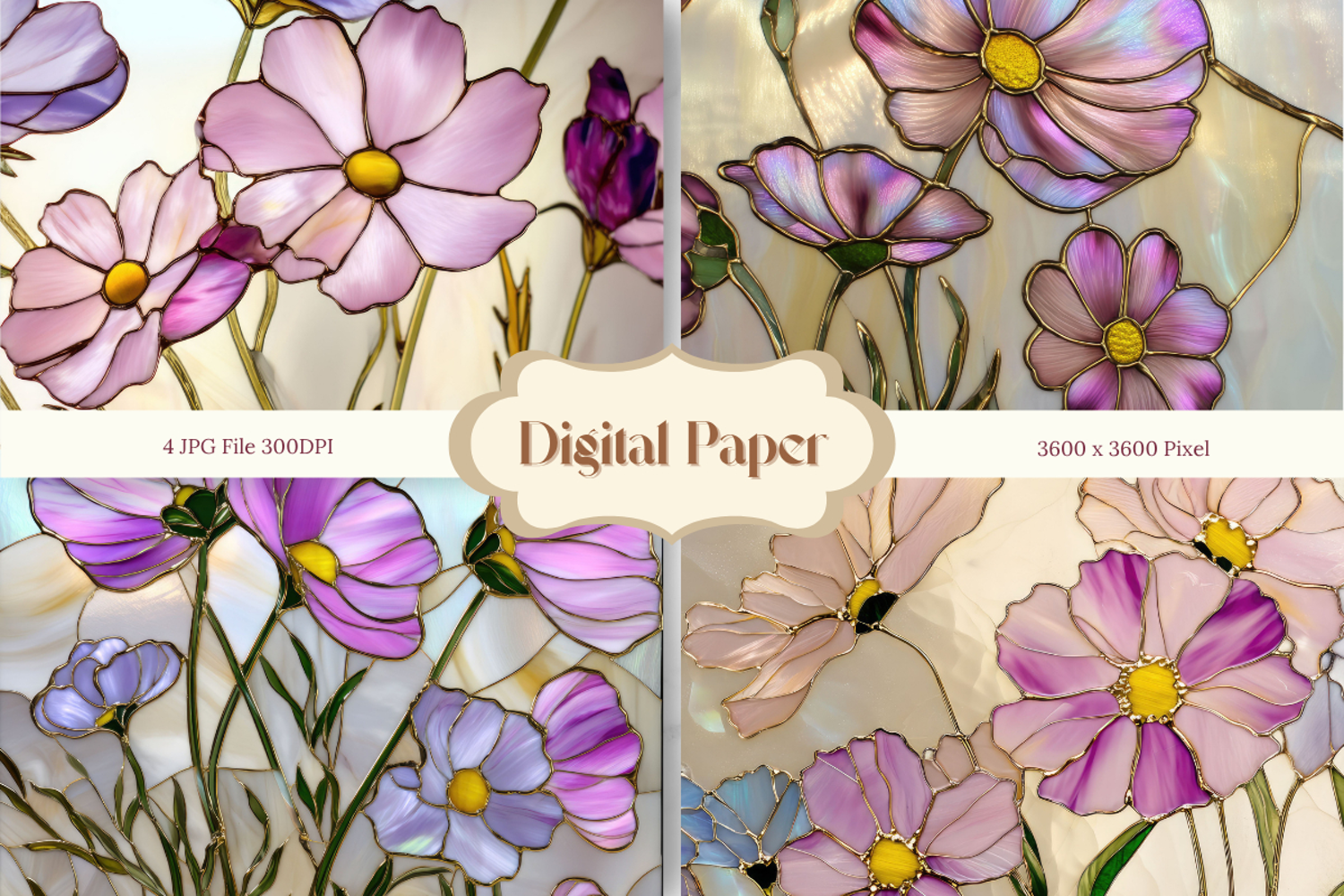 Digital Paper Pack Craft Supplies Background Paper Stained Glass Background Stained Glass Texture Flower Stained Glass Party Wallpaper Window Stained Glass