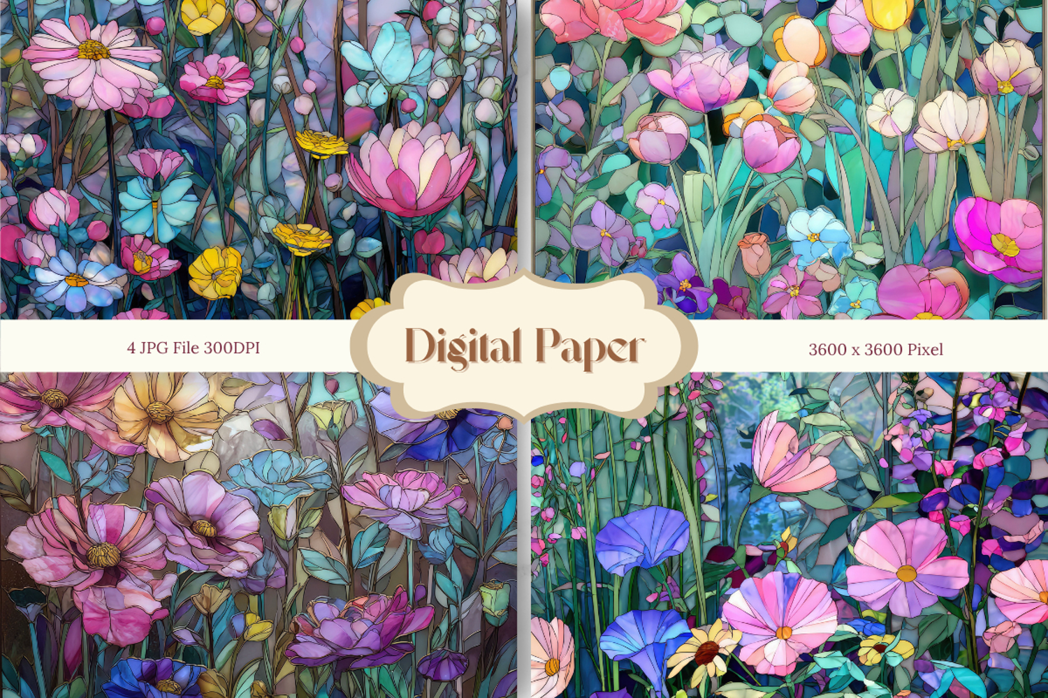 Digital Paper Pack Craft Supplies Background Paper Stained Glass Background Stained Glass Texture Flower Stained Glass Party Wallpaper Window Stained Glass