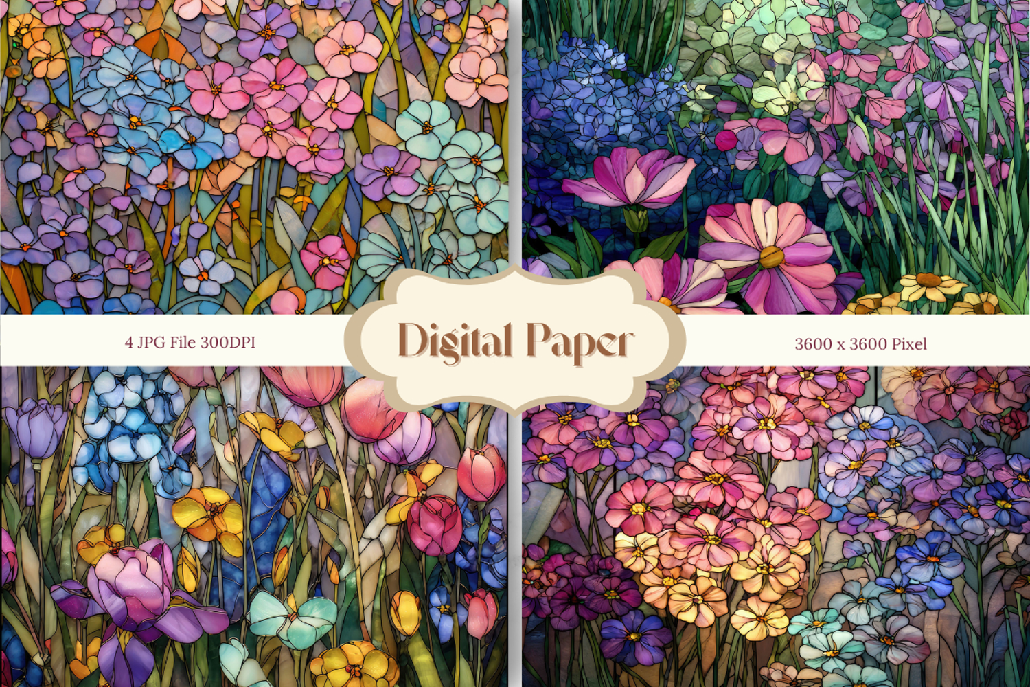 Digital Paper Pack Craft Supplies Background Paper Stained Glass Background Stained Glass Texture Flower Stained Glass Party Wallpaper Window Stained Glass