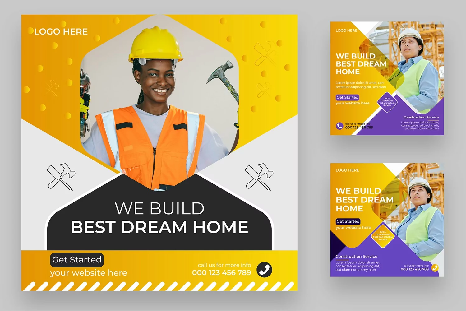 Construction renovation flyer and web banner or social media post amp template and web banner design. It is also suitable for Facebook, LinkedIn and Instagram post. This is a clean eye-catchy professional social media post banner template for any kind of business