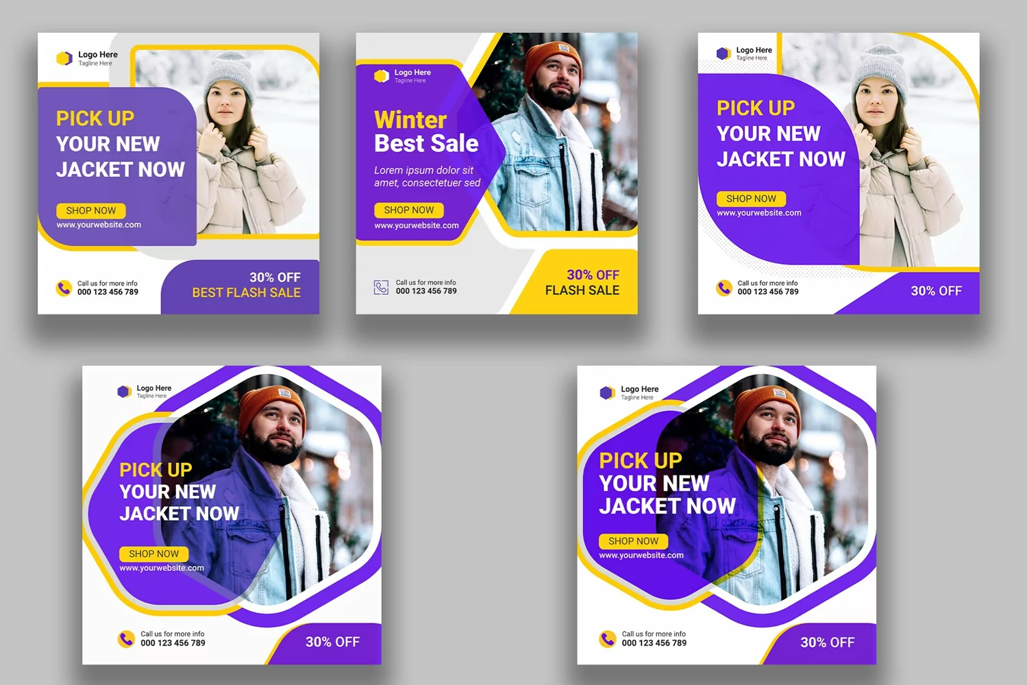 Winter and pick up your new jacket now Social Media post template and web banner design.