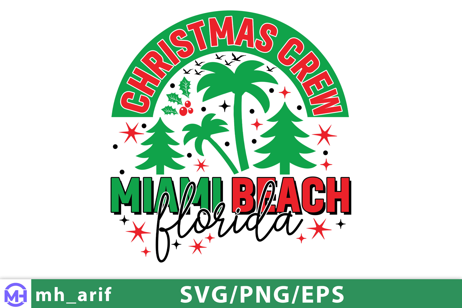 Similar Design Products to Christmas Crew 2025 Miami BEACH Florida SVG PNG T-shirt Desi
