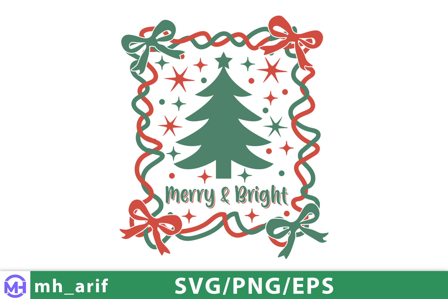 Christmas Merry & Bright Hand-Drawn SVG PNG T-shirt Design
