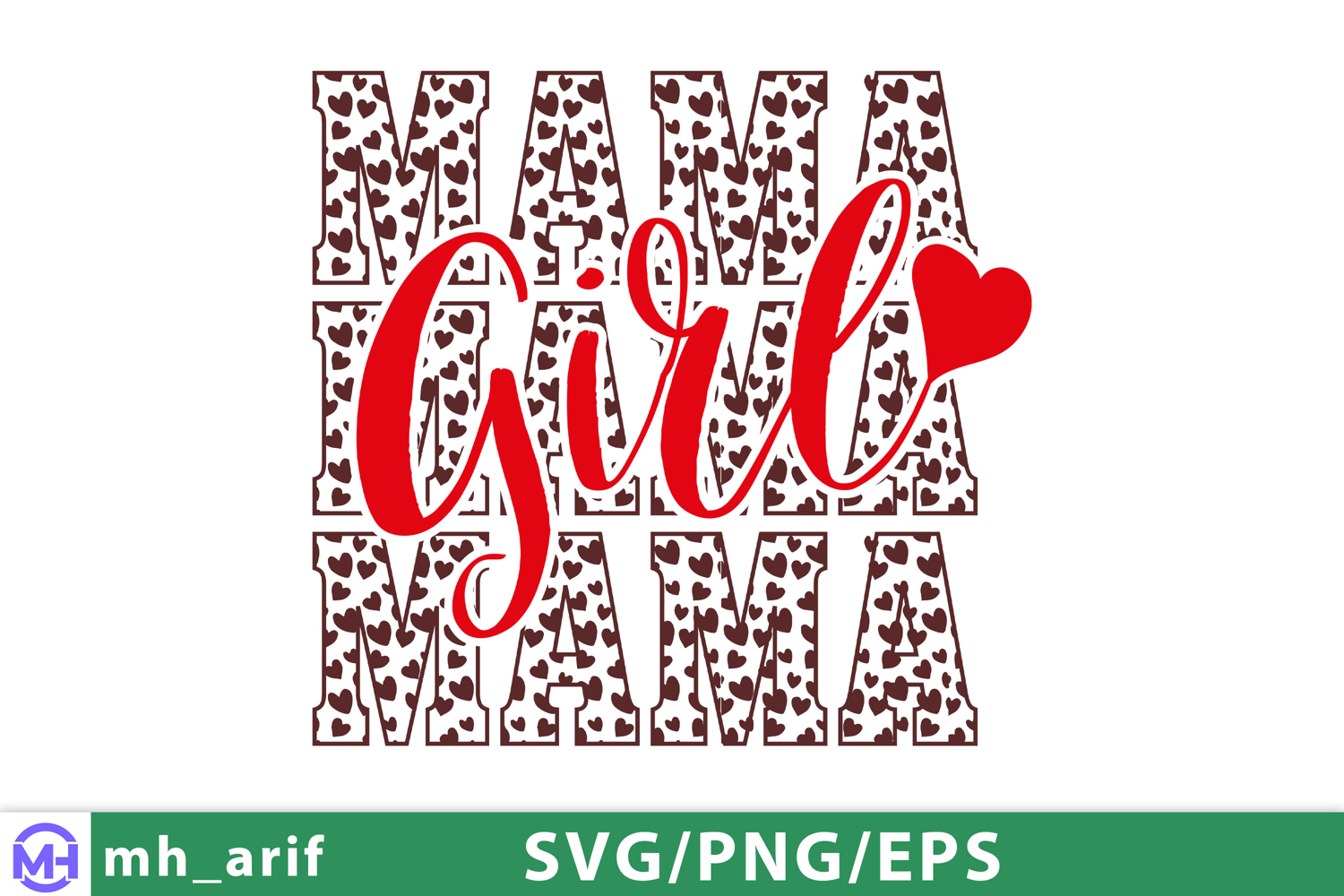 Mama Mom Mother Girl SVG PNG T-shirt Design example image 1