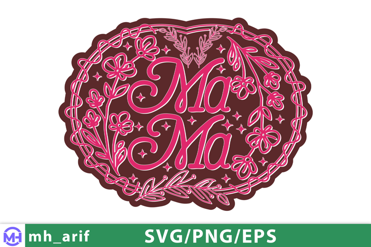 Mama Mother Wreath PNG SVG T-shirt Design example image 1