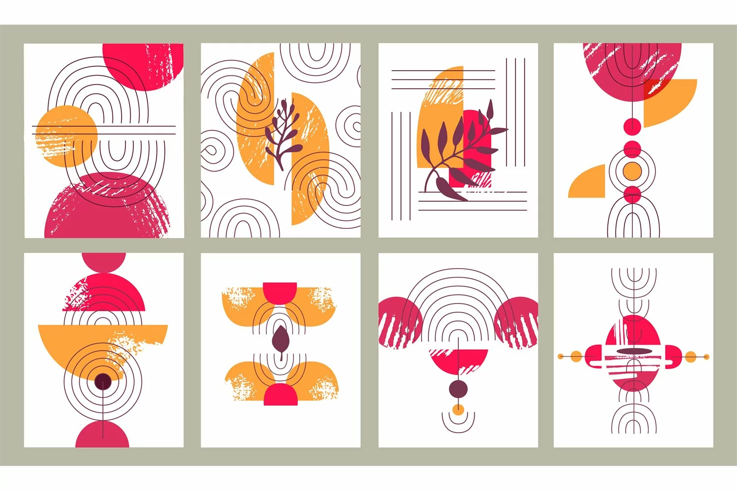 Contemporary bohemian cards. Colorful minimalist balance art