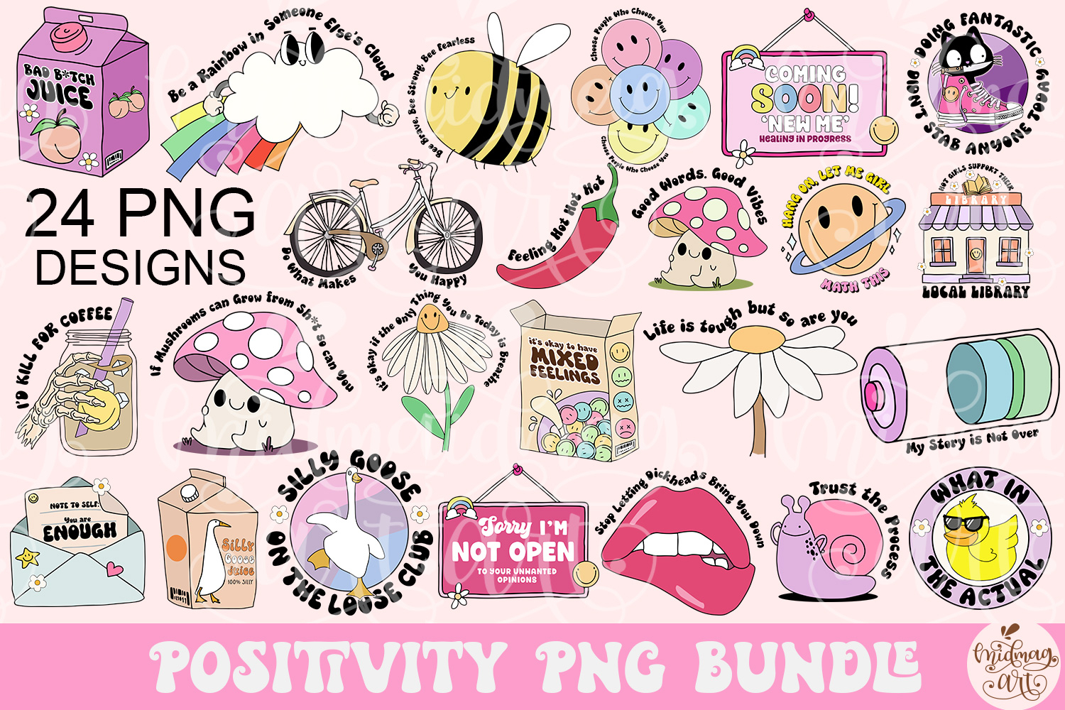 Positivity Bundle Png designs is a digital file (zip file). No physical item will be mailed to you. The zip file contains:
