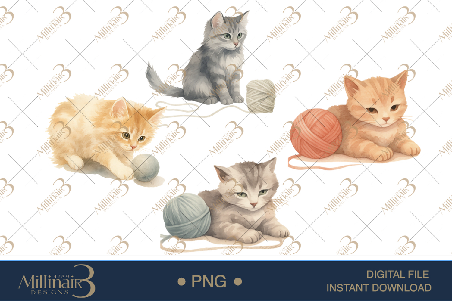 🧶 Watercolor Cat Knitting Clipart 🌈