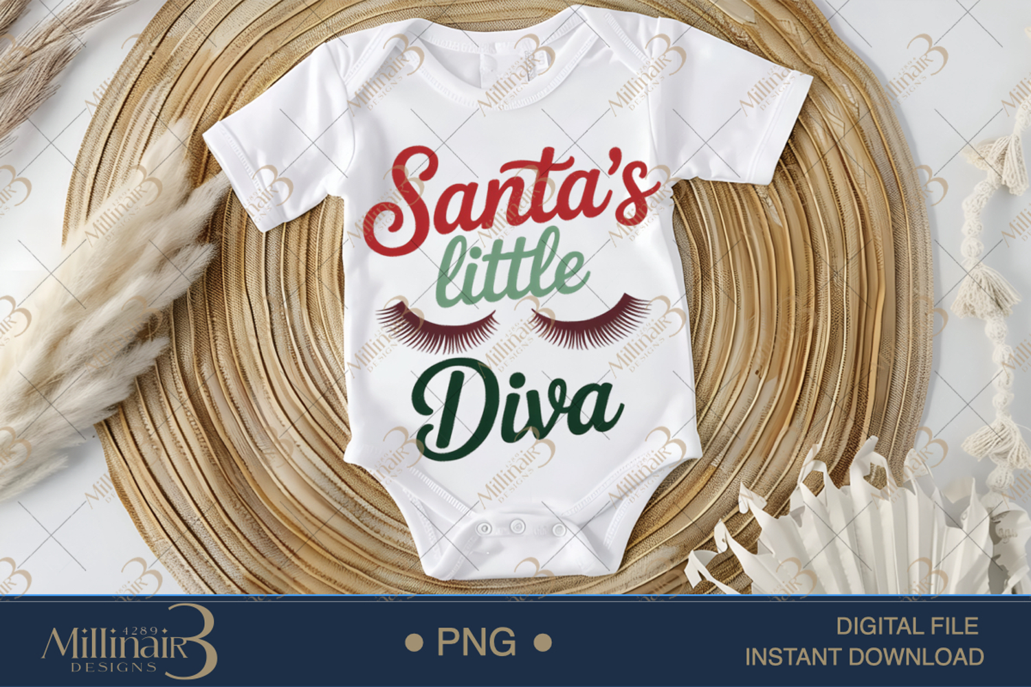 Santa’s Little Diva – Glam Christmas PNG Design for Girls 🎄