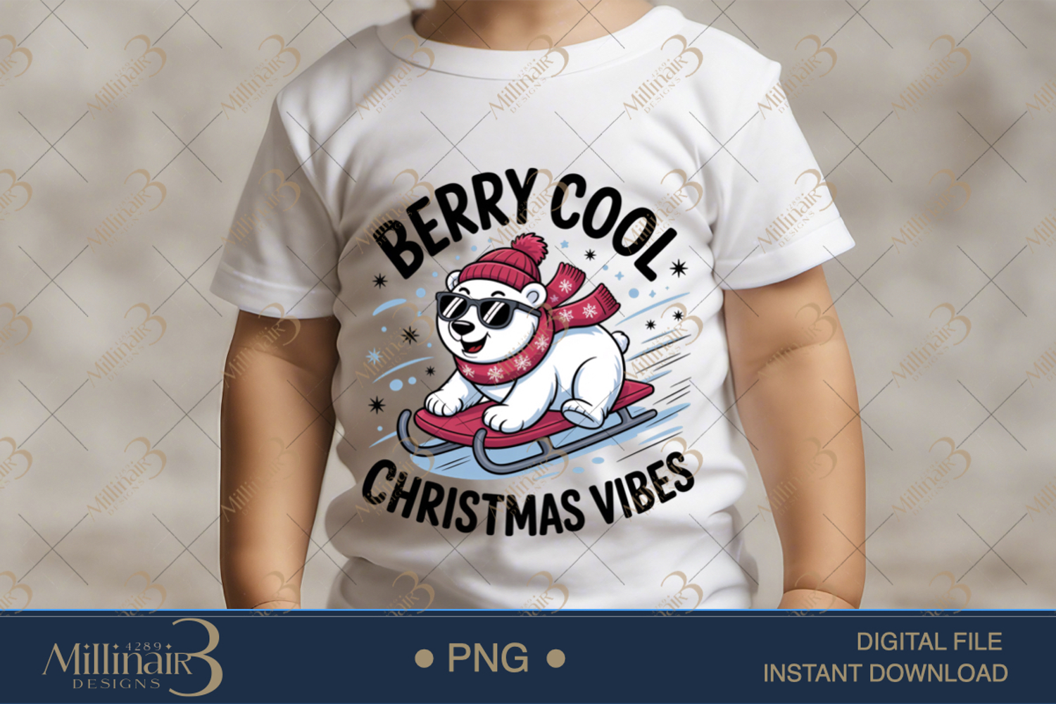 ❄️ Berry Cool Christmas Vibes PNG | Polar Bear Sledding Sublimation Design 🧣
