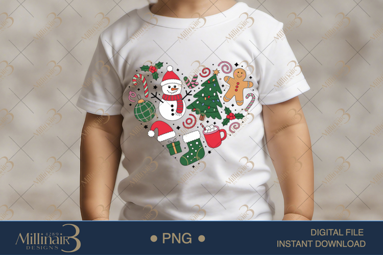 Cute Christmas Heart Clipart PNG | Holiday Doodle Illustrati example image 1