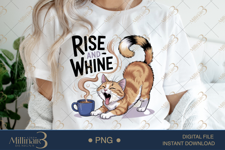 This hilarious Rise and Whine PNG features a stretching orange tabby cat yawning beside a hot cup of coffee, with steam curling into bold lettering. It’s the purr-fect blend of sleepy mornings and feline sass — ideal for: