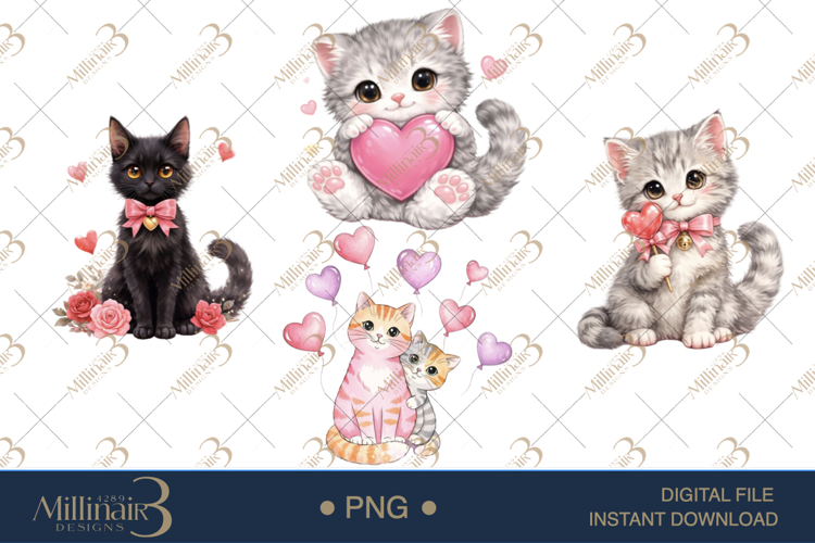 🐾 Cute Cat Valentine Clipart – Instant Download! 💌