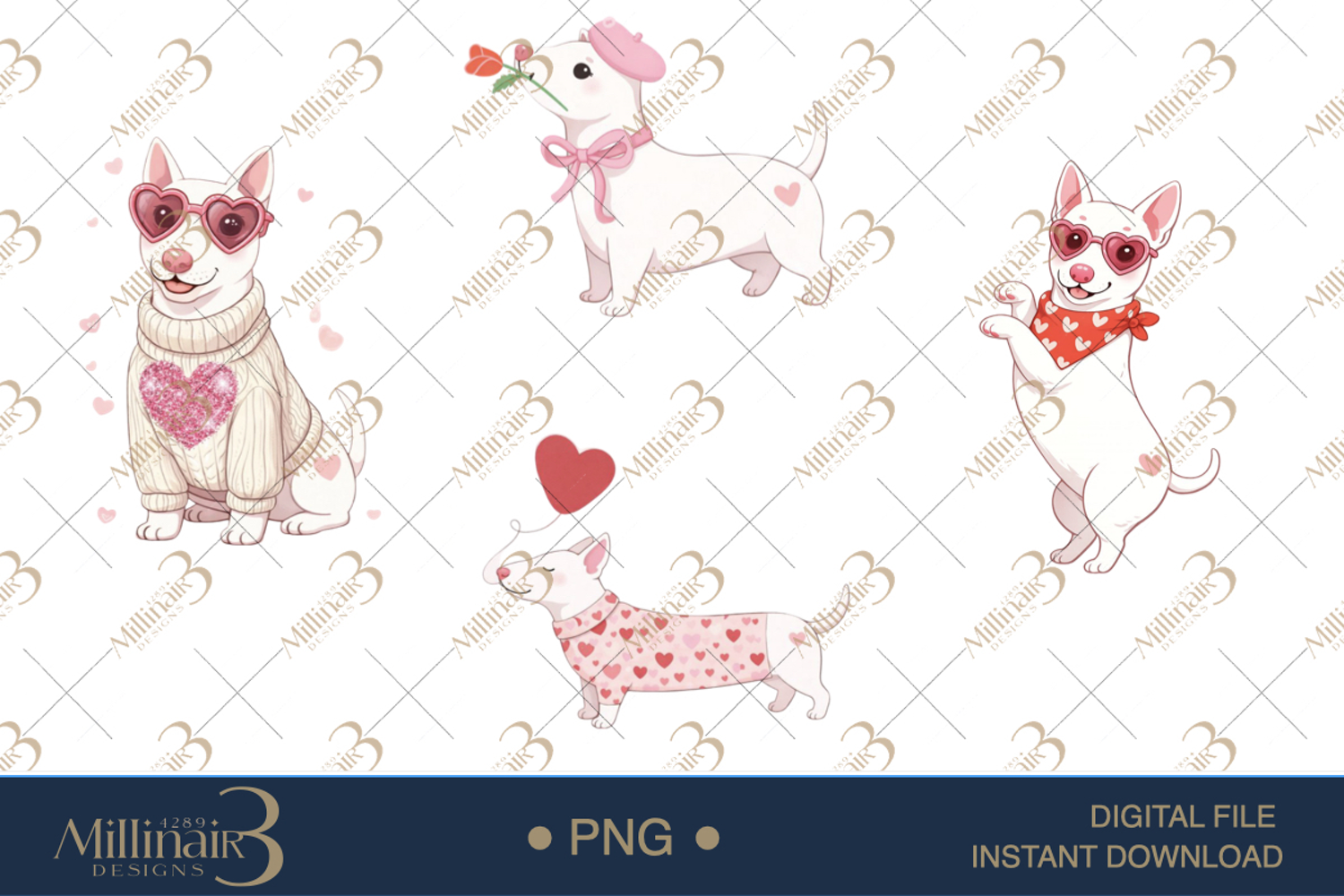 🐾 Funny Bull Terrier Valentine Clipart – 4 PNGs 💌