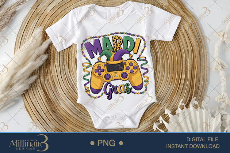 💜💛💚 Mardi Gras Gamer – Festive Gaming PNG Design