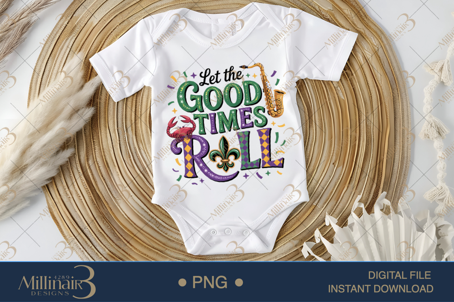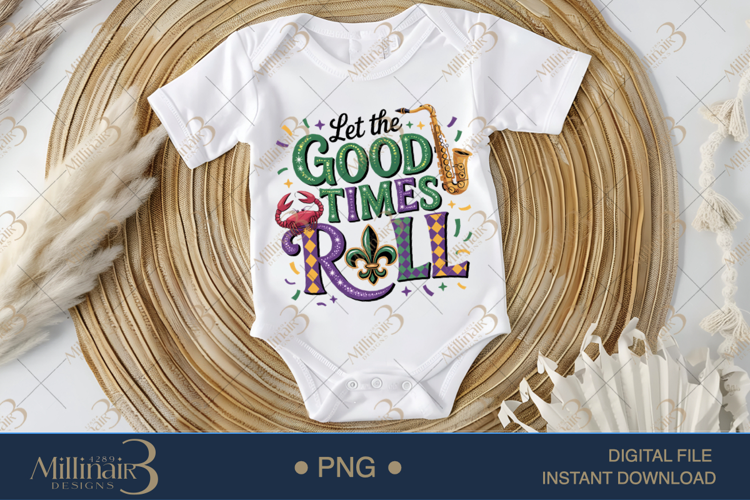 Bring the spirit of New Orleans to life with this festive “Let The Good Times Roll” Mardi Gras design 🎷🎉