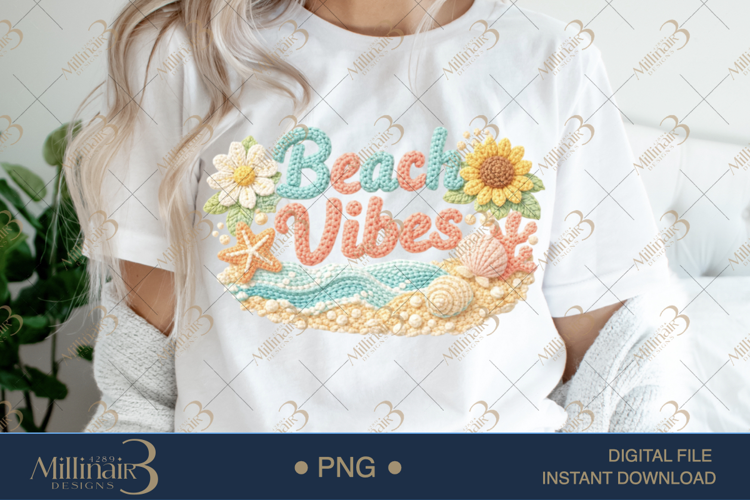Beach Vibes PNG, Summer Coastal Quote ,Crochet Style Beach example image 1