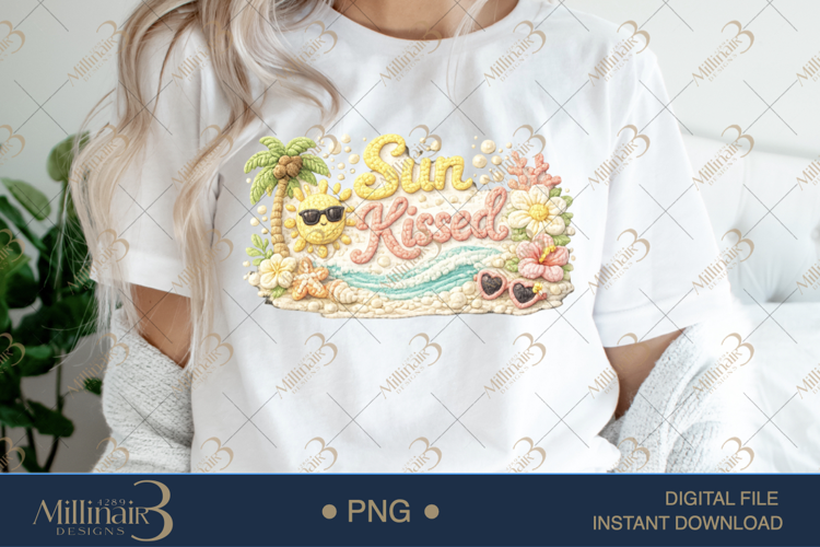 Add warm, sunny vibes to your creations with this adorable “Sun Kissed” crochet-style PNG design 🌴🌊