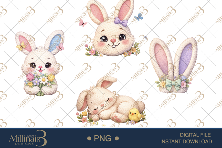 🐰 Cute Easter Bunny Clipart Bundle – 4 PNG Designs