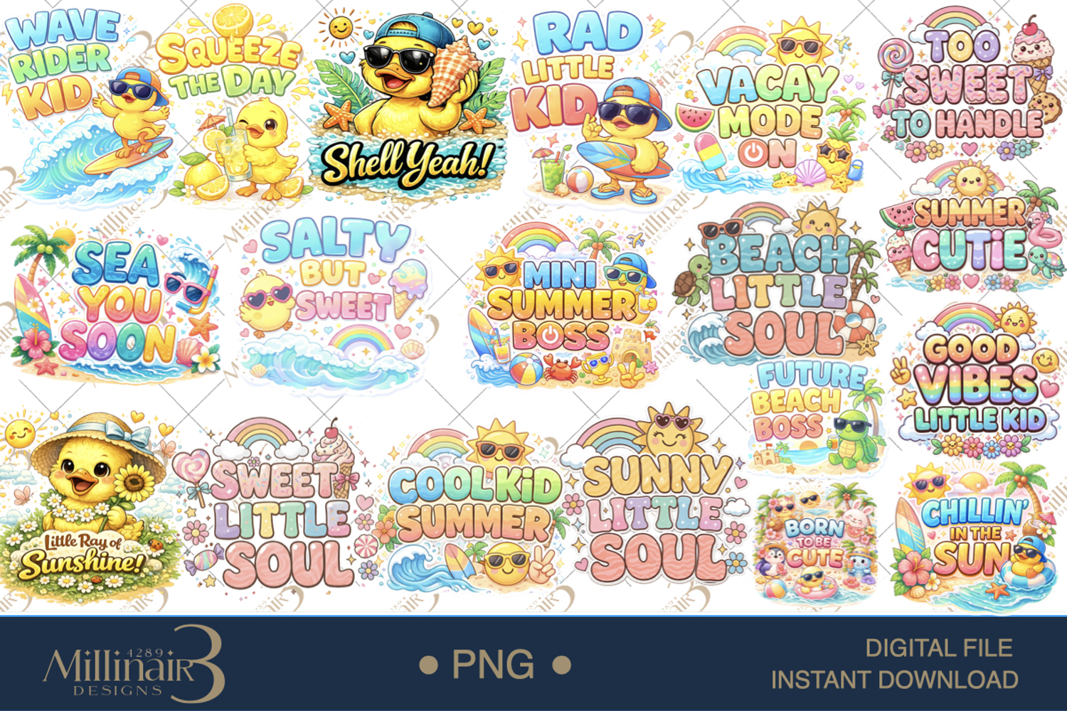 Level up your shop with this adorable Cute Summer Kids PNG Bundle 💕☀️ Featuring 20 high-quality designs packed with playful quotes, beach vibes, and cute characters—perfect for creating best-selling summer products!
