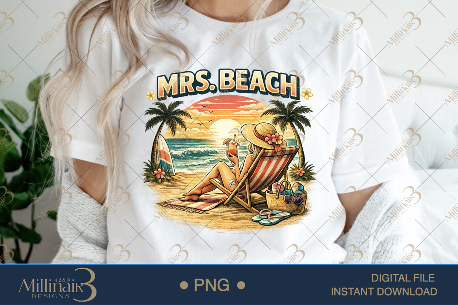 🌴 Mrs. Beach PNG – Summer Bride Beach Clipart | Tropical Sunset Woman Design | Bachelorette Vacation Graphic | Printable for Shirts, Stickers & Sublimation 4000x4000