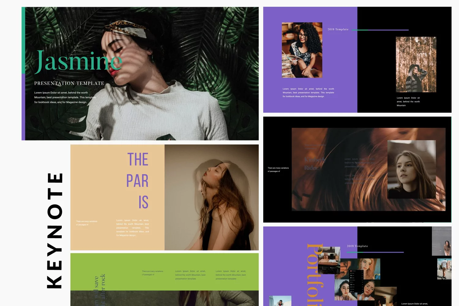 **Jasmine Dark** is Simple Fashion Lookbook Professional Keynote Template and beautiful creative presentation design. which is great for use in a variety of Public Presentations, Personal Portfolios, Official Presentations, Creative Agents, Portfolio Designers, Illustrator Portfolios, Photographers Portfolios, and more. Its just as easy to customize to fit your needs, replace images and texts.