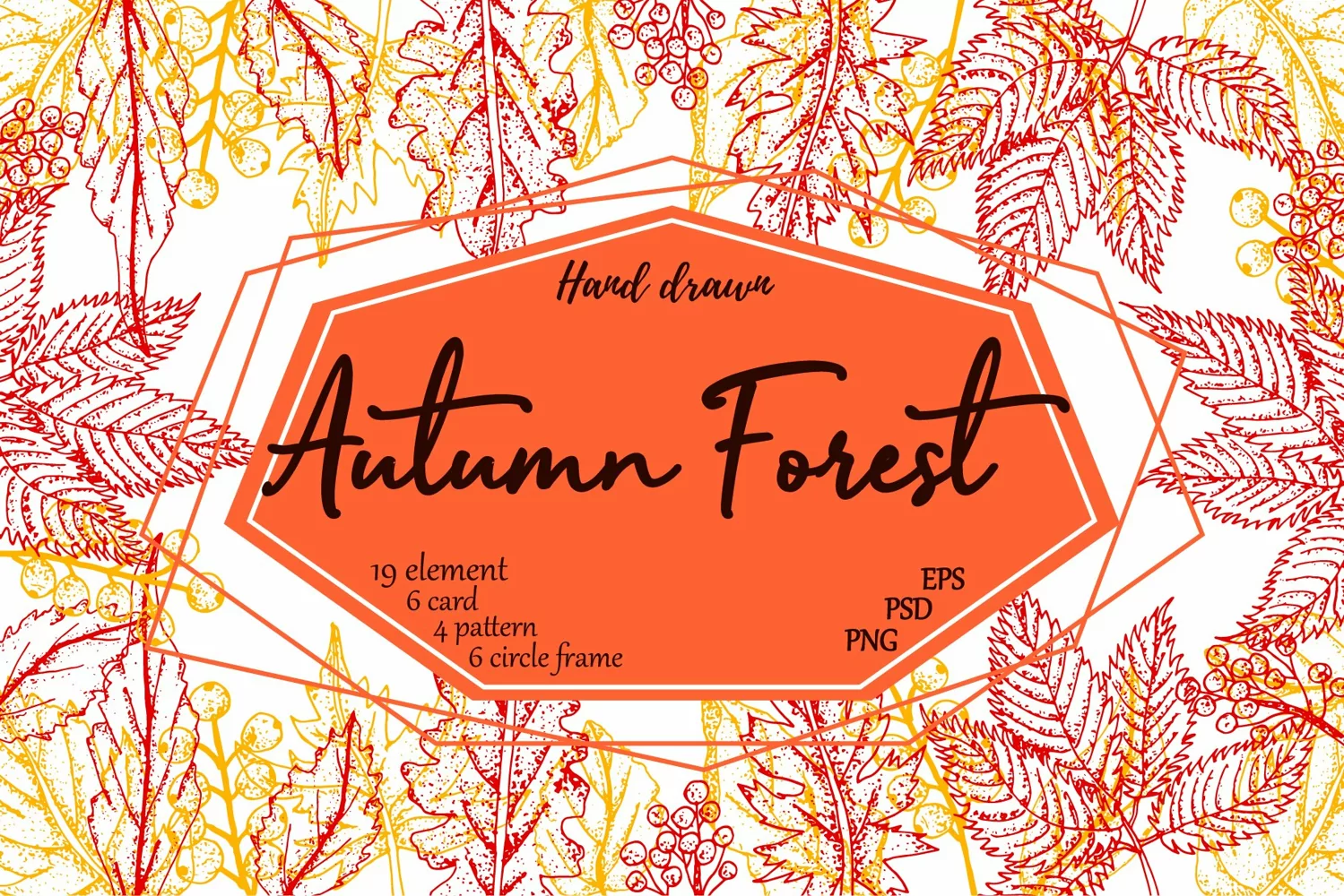 Leaves and berries set. Hand drawn, decorative, elements of autumn forest. Vector natural illustration.