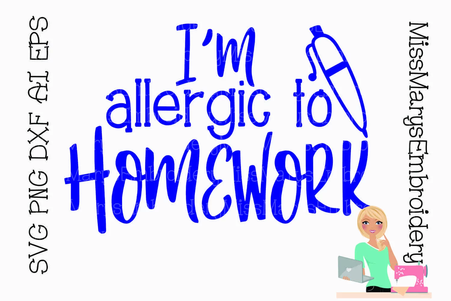 This is a digital file containing the I'm Allergic to Homework Saying. It is available for instant download in the following formats--- SVG, DXF, PNG, EPS, AI,