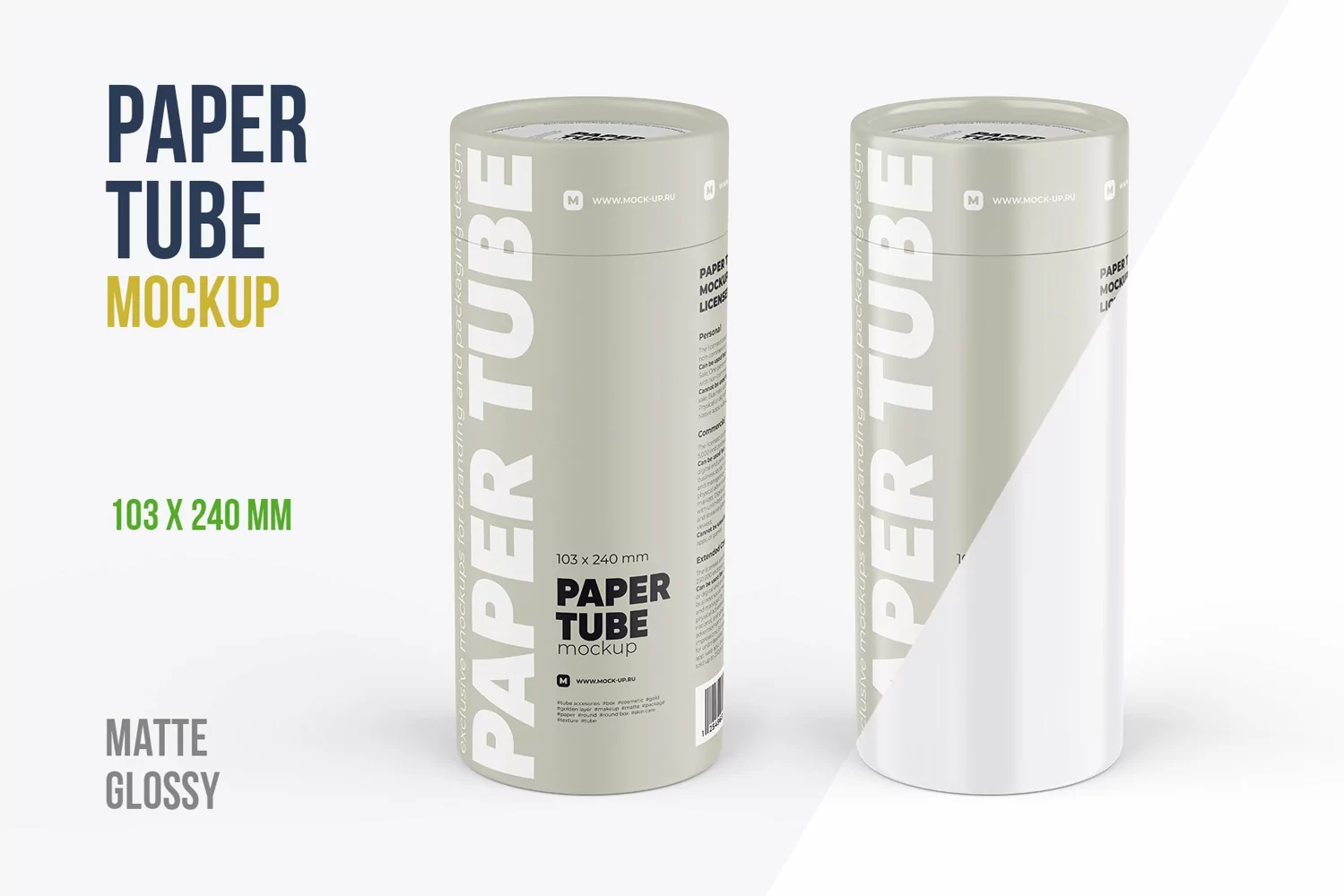 Closed Paper Tube Mockup 103x240mm - layered, editable psd file prepared to showcase your custom design, by simply editing the smart object and color layers. To showcase your design to a client or design your portfolio.