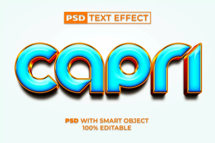 3D Capri text effect golden style for Photoshop with Smart Object. This text effect gives you an easy and fast possibility to apply a text effect or logo design. Just replace the text in the the smart object