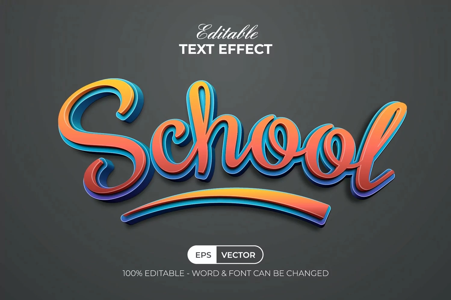 School 3d Text Effect Curved Style