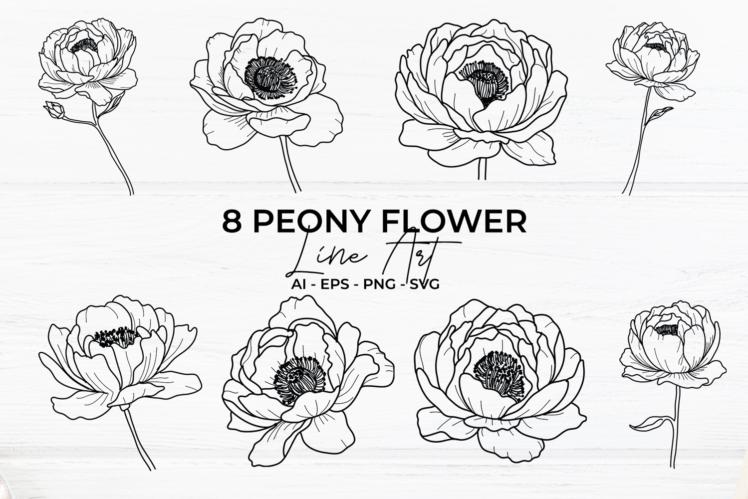 Design Template Flower Wedding Invitation Peony Element Flower Line Art Peony Flower Svg Peony Line Art Peony Flower Design
