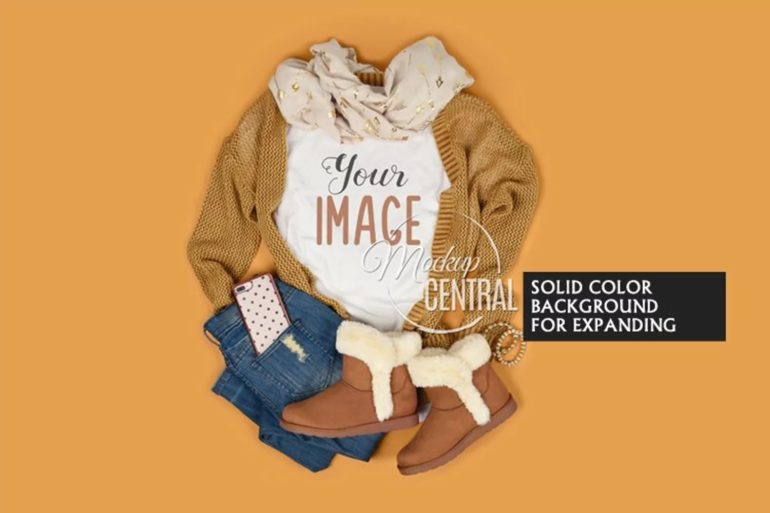 Enjoy this women's bella canvas blank white crew neck t-shirt Winter Mockup Styled Stock Photography to insert your image or text into for a fashion design product. Makes the perfect mock up shirt template for a cozy winter theme. There are winter boots on a solid colored tan background, perfect for expanding on all sided. This is a digital JPG file.