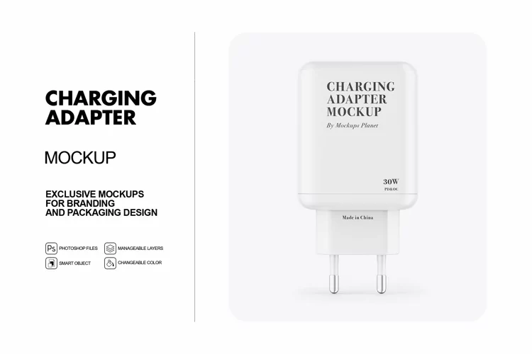 Mockup Power Matte Charging Portable Charger Adapter Adaptor Mockups Planet 30w