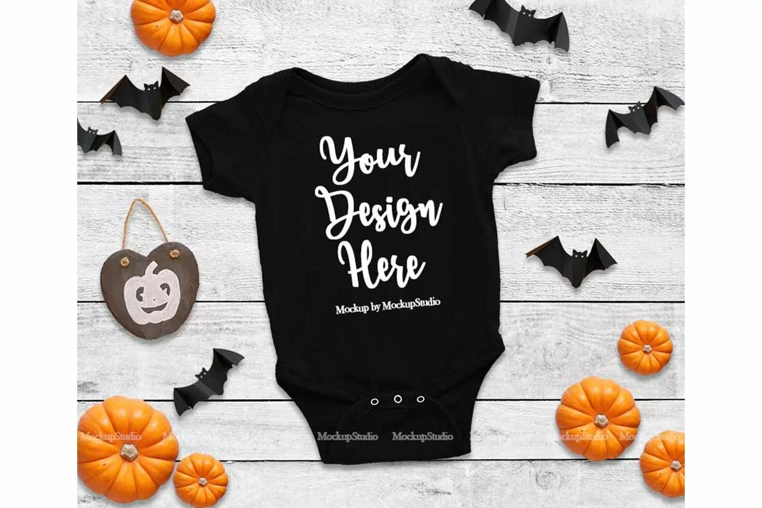 Similar Design Products to Halloween Newborn Black Blank Baby Bodysuit Mock Up Display