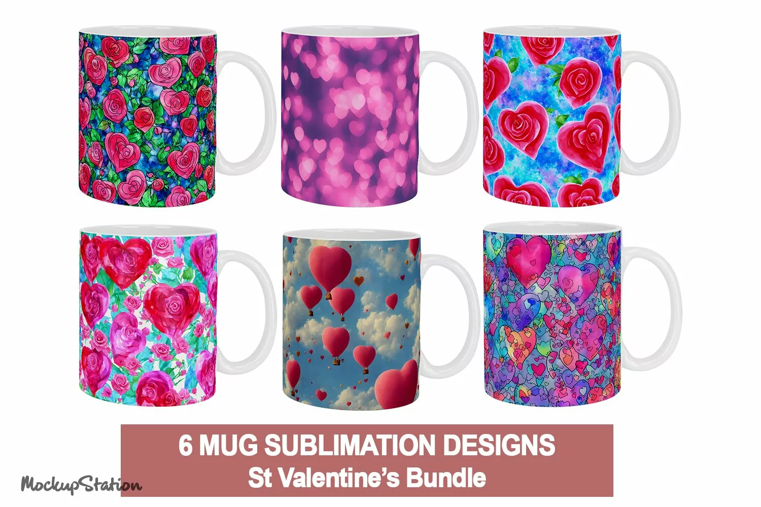 Valentine's Mug Wrap Bundle | Love Hearts Mug Sublimation Designs PNG Set
