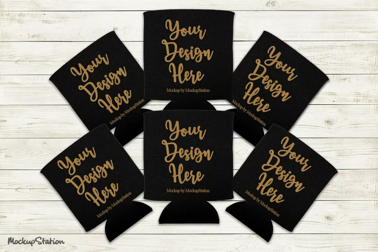 Similar Design Products to Black Can Coolers Mockup | Can Holder Flat Lay Mock Up JPG