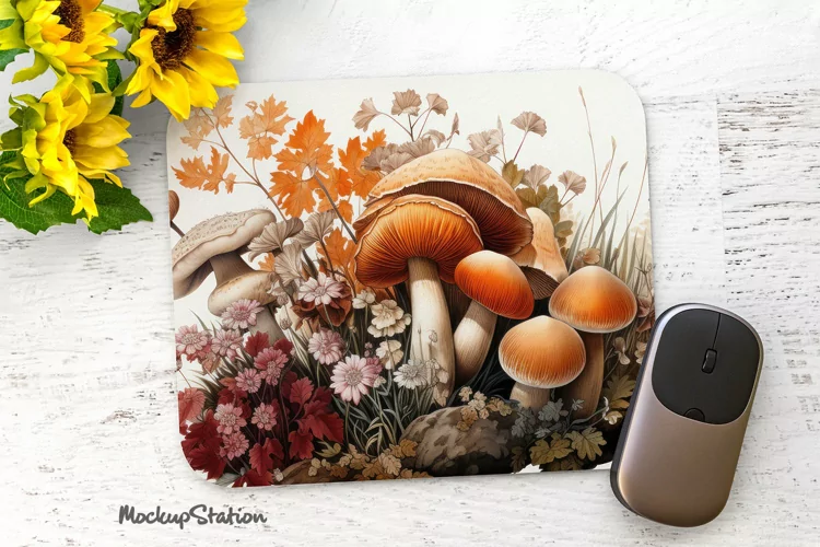 Mushrooms Mouse Pad, Fall Mouse Mat Design Sublimation PNG, Autumn Digital Download